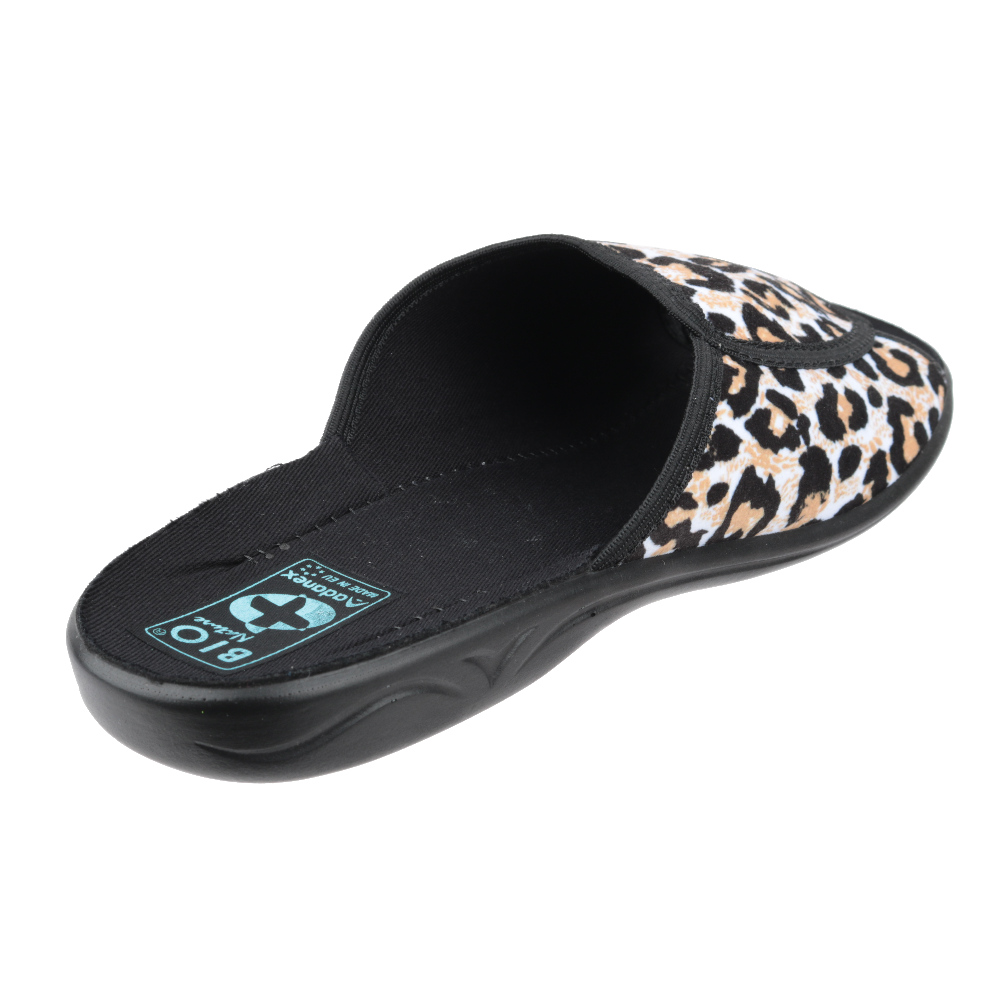 Sieviešu istabas čības. Ārpuses sastāvs – tekstils. Iekšpuses sastāvs – tekstils. Zole – poliuretāns. Papēža augstums – 2.1 cm. Krāsa – puķaina.
