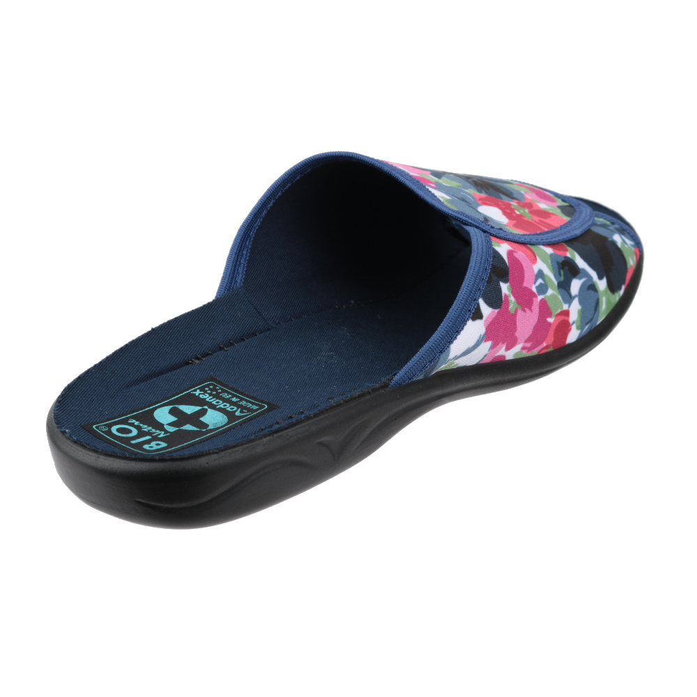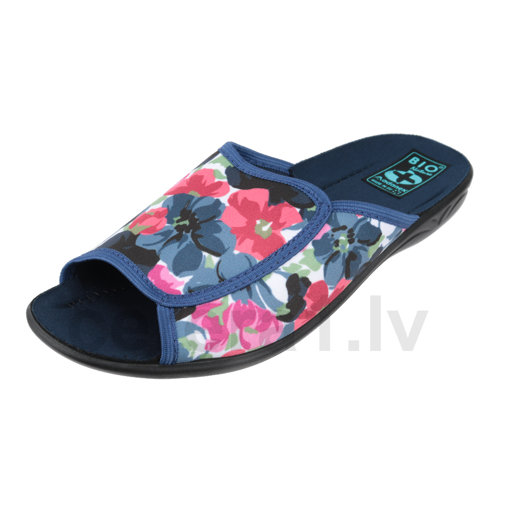 Sieviešu istabas čības. Ārpuses sastāvs – tekstils. Iekšpuses sastāvs – tekstils. Zole – poliuretāns. Papēža augstums – 2.1 cm. Krāsa – puķaini.