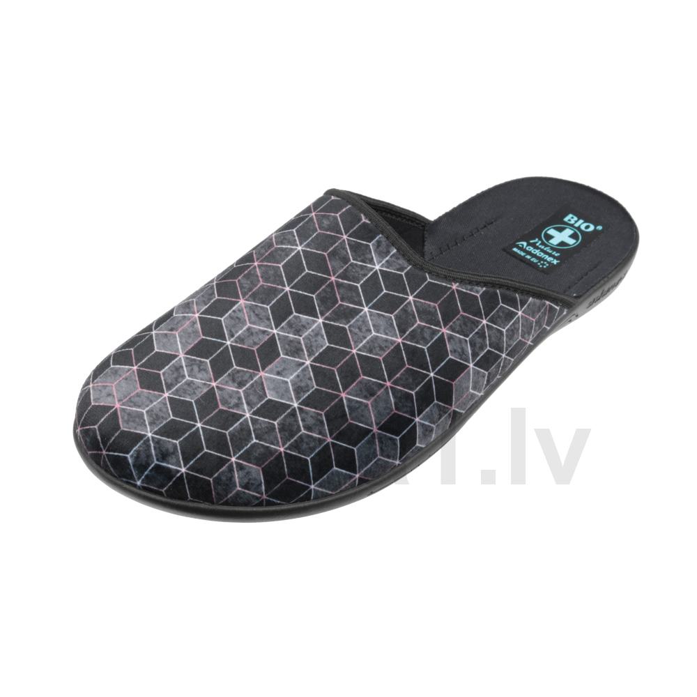 Vīriešu istabas čības. Ārpuses sastāvs – tekstils. Iekšpuses sastāvs – tekstils. Zole – poliuretāns. Papēža augstums – 2.2 cm. Krāsa – pelēka.