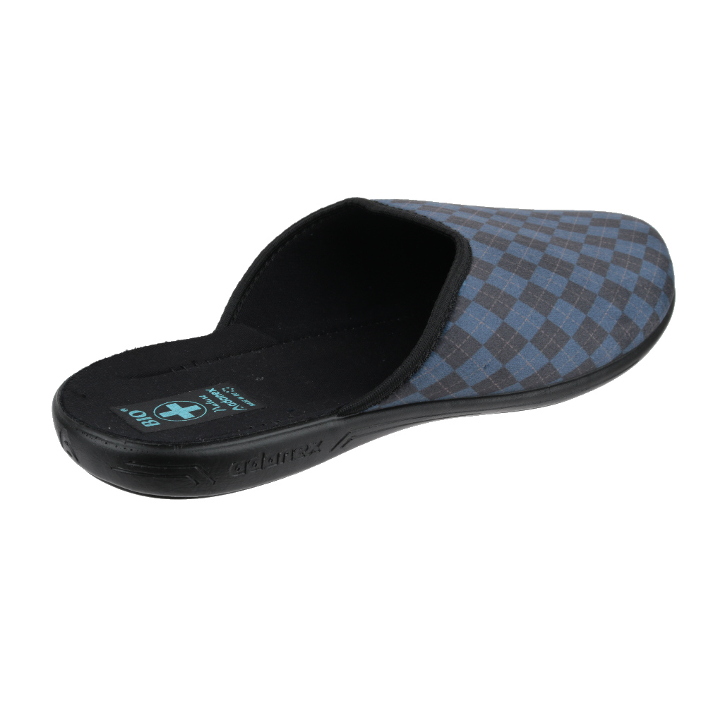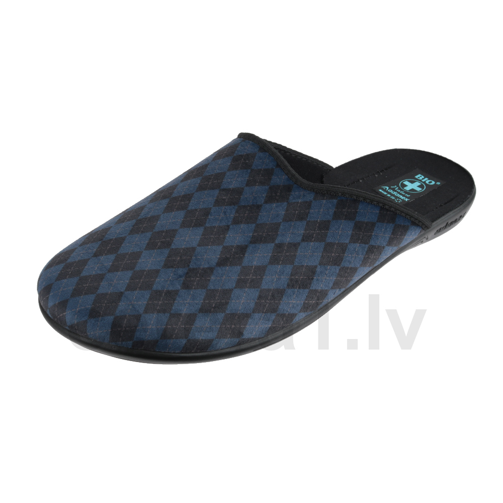 Vīriešu istabas čības. Ārpuses sastāvs – tekstils. Iekšpuses sastāvs – tekstils. Zole – poliuretāns. Papēža augstums – 2.2 cm. Krāsa – zila.