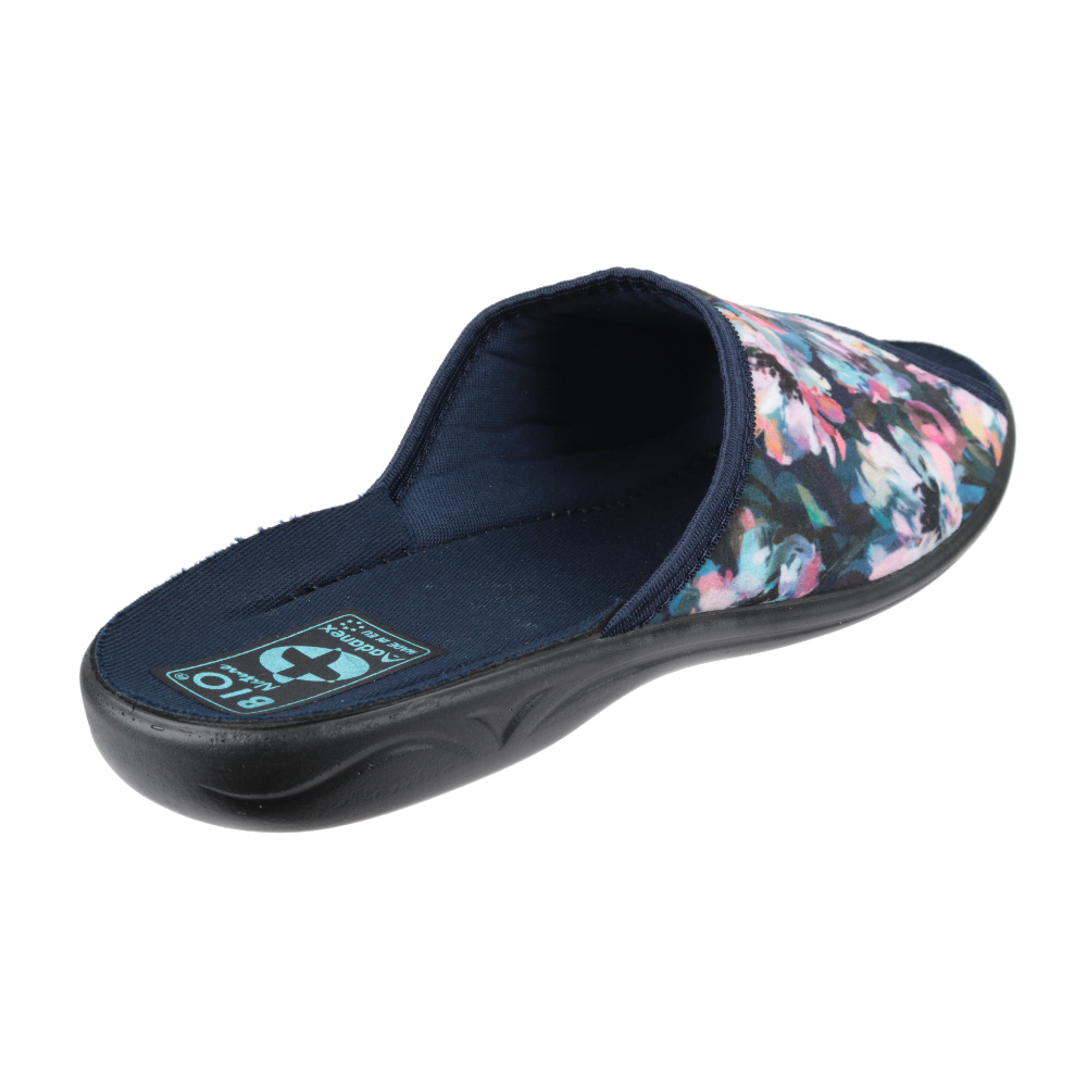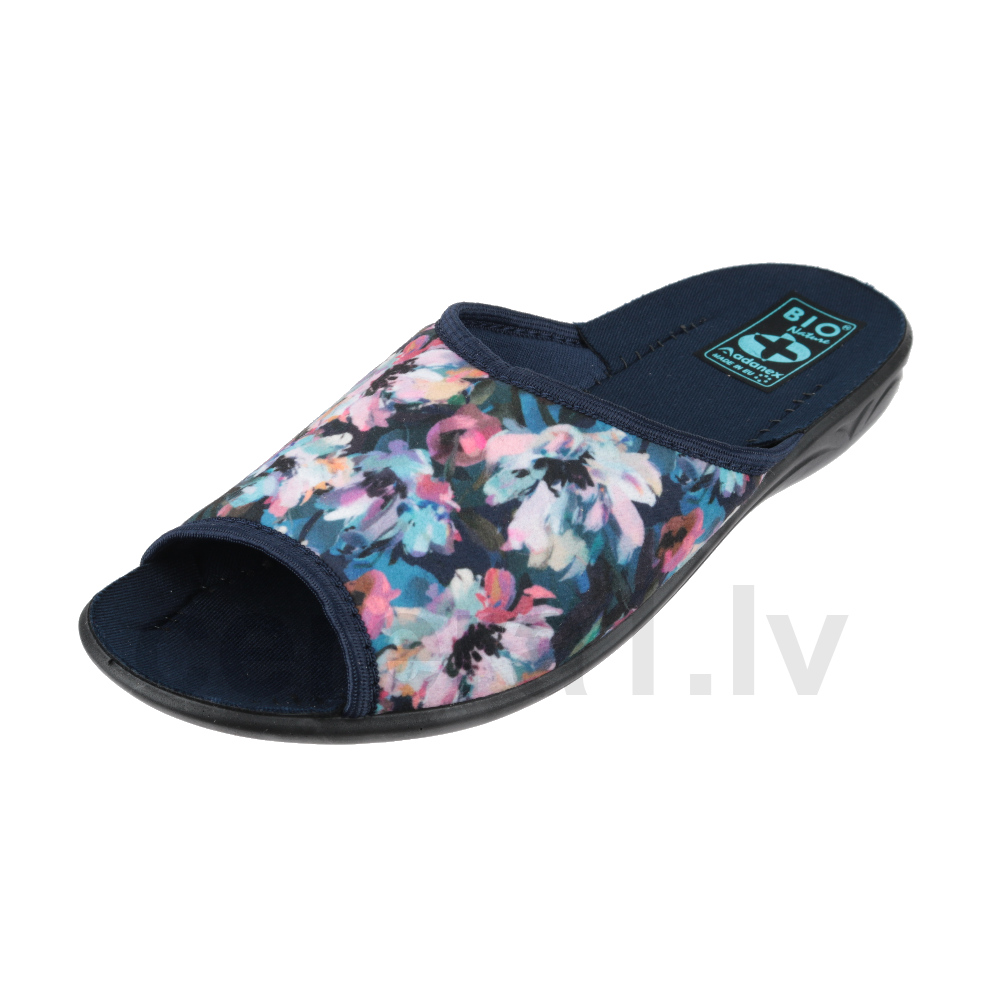 Sieviešu istabas čības. Ārpuses sastāvs – tekstils. Iekšpuses sastāvs – tekstils. Zole – poliuretāns. Papēža augstums – 2.2 cm. Krāsa – zilas.