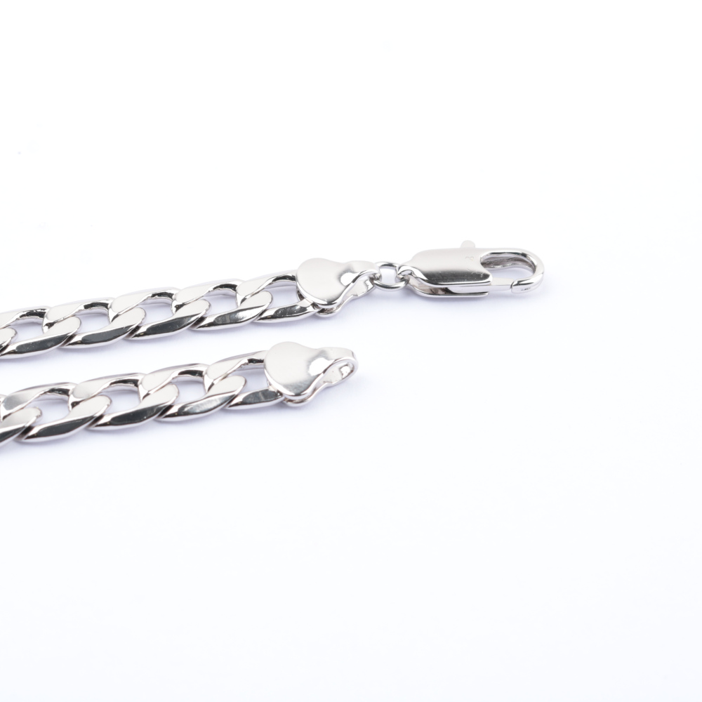Bižutērijas aproce sudrabotā krāsā. Garums – 20 cm. Platums – 0.75 cm.