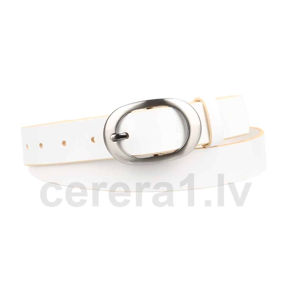 Dabīgās ādas josta. Metāla sprādze – sudrabota. Jostas platums – 2.9 cm. Krāsa – balta.