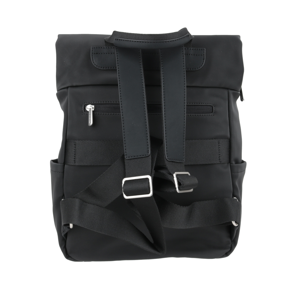 Poliestera mugursoma. Izmērs: 30 × 37 × 13 cm. Krāsa – melna.