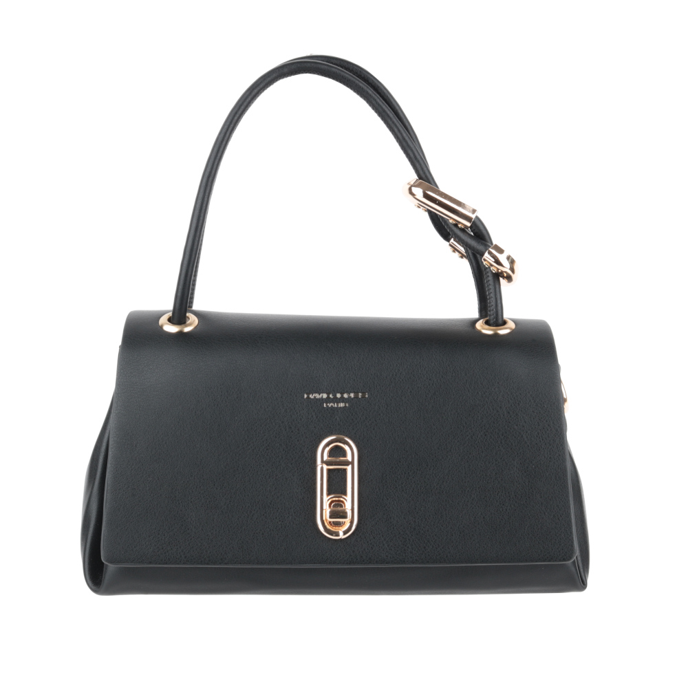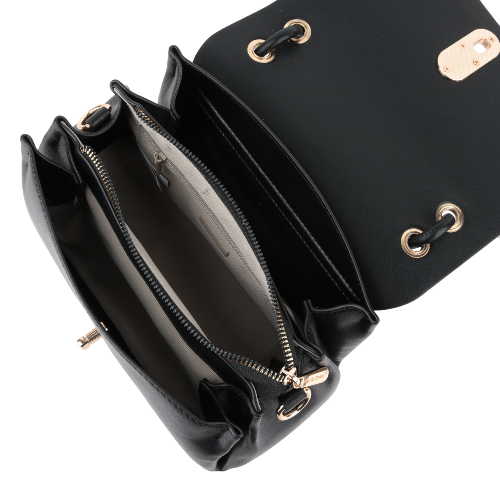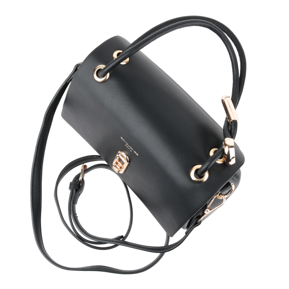 Mākslīgās ādas plecu soma sievietēm. Izmērs: 25 × 14 × 12 cm. Krāsa – melna.