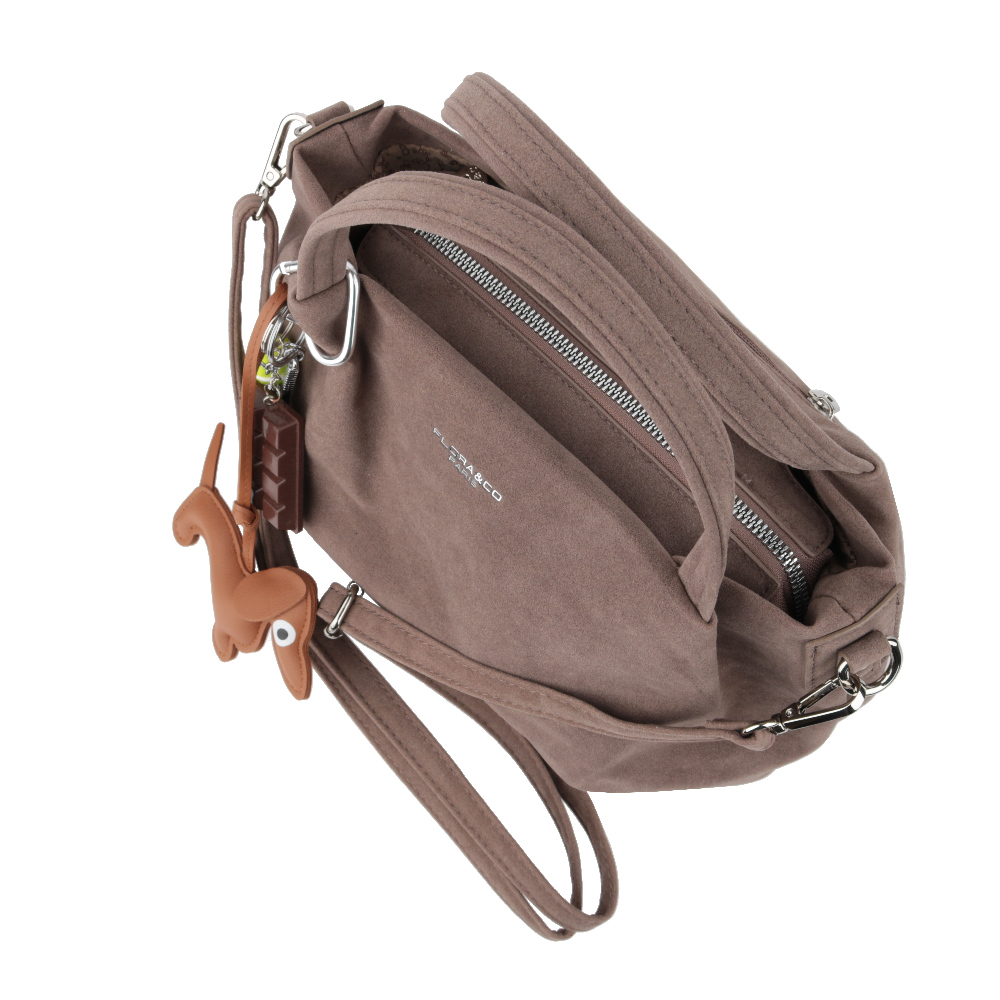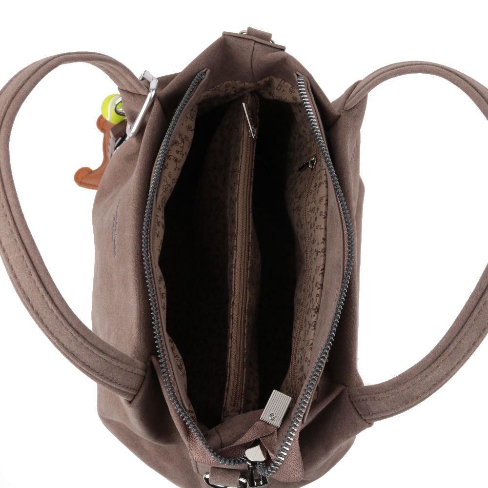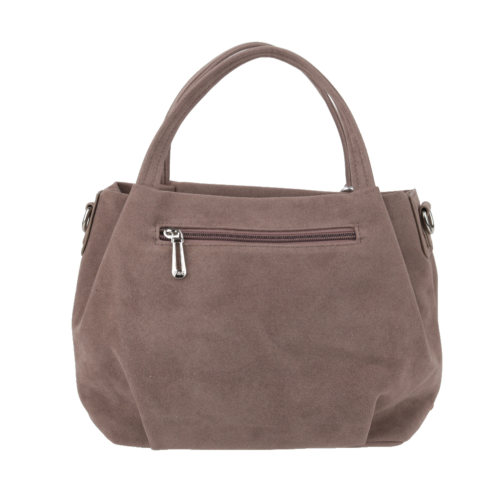 Mākslīgās zamšādas soma sievietēm. Izmērs: 30 × 20 ×15 cm. Krāsa – brūna.