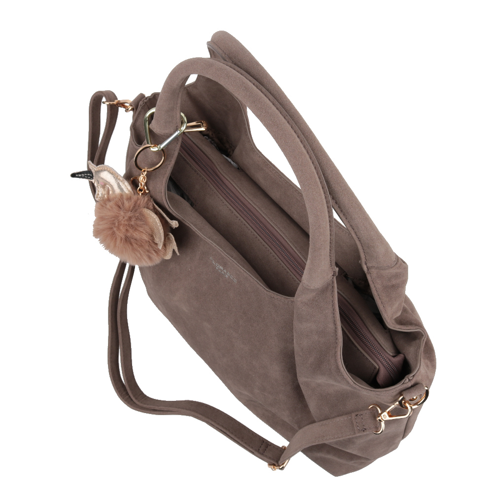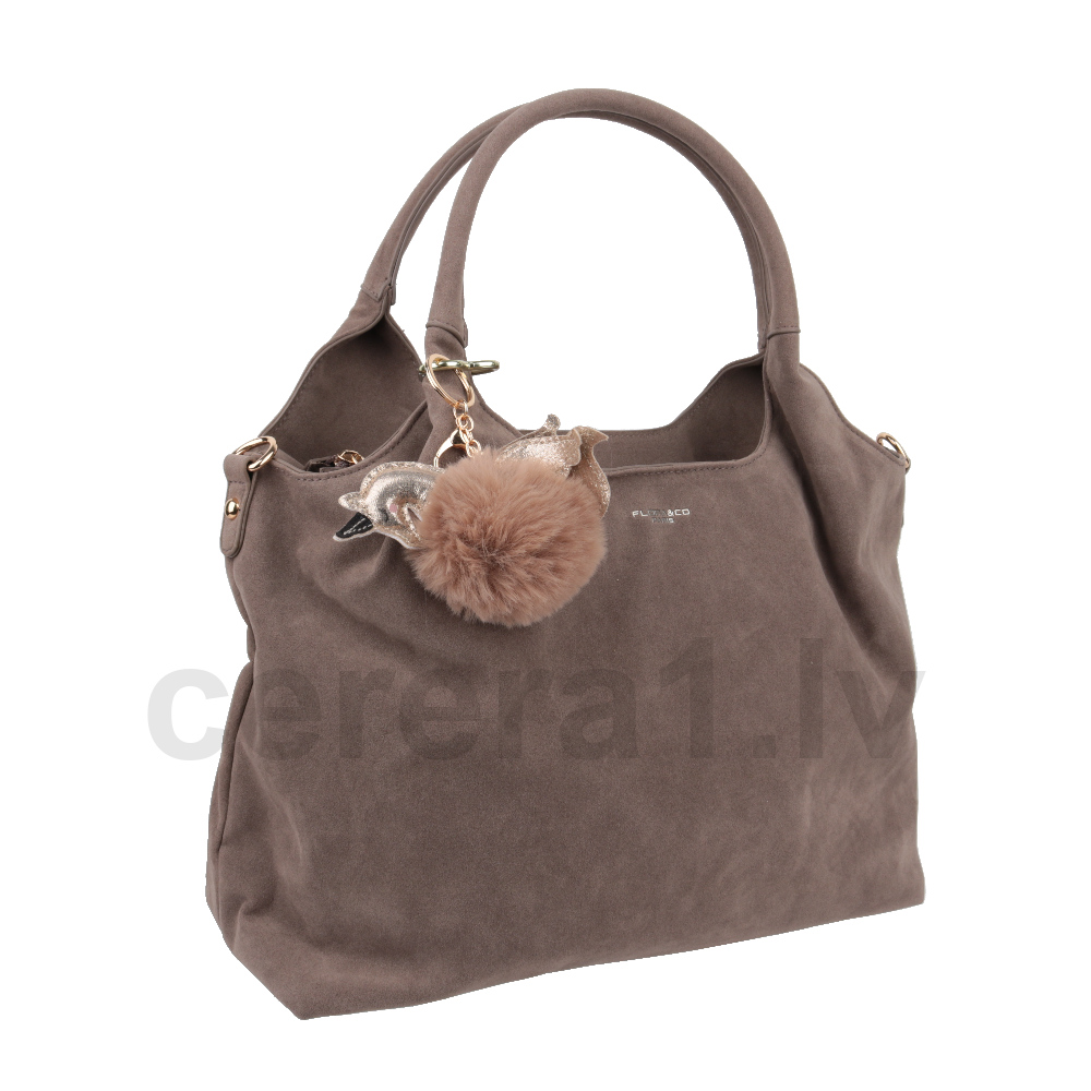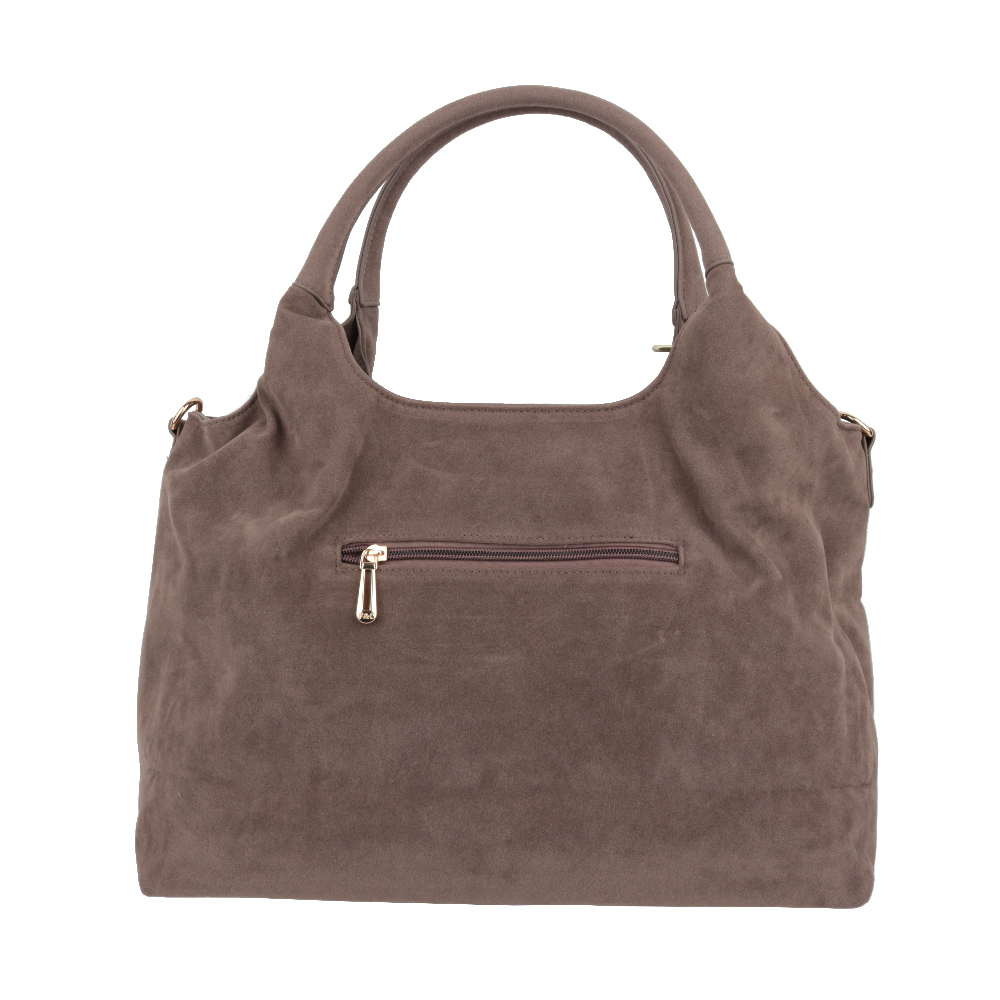 Mākslīgās zamšādas soma sievietēm. Izmērs: 41 × 28 × 14 cm. Krāsa – brūna.