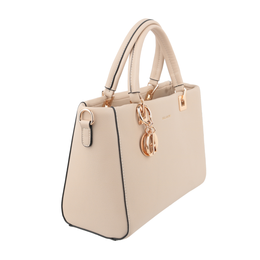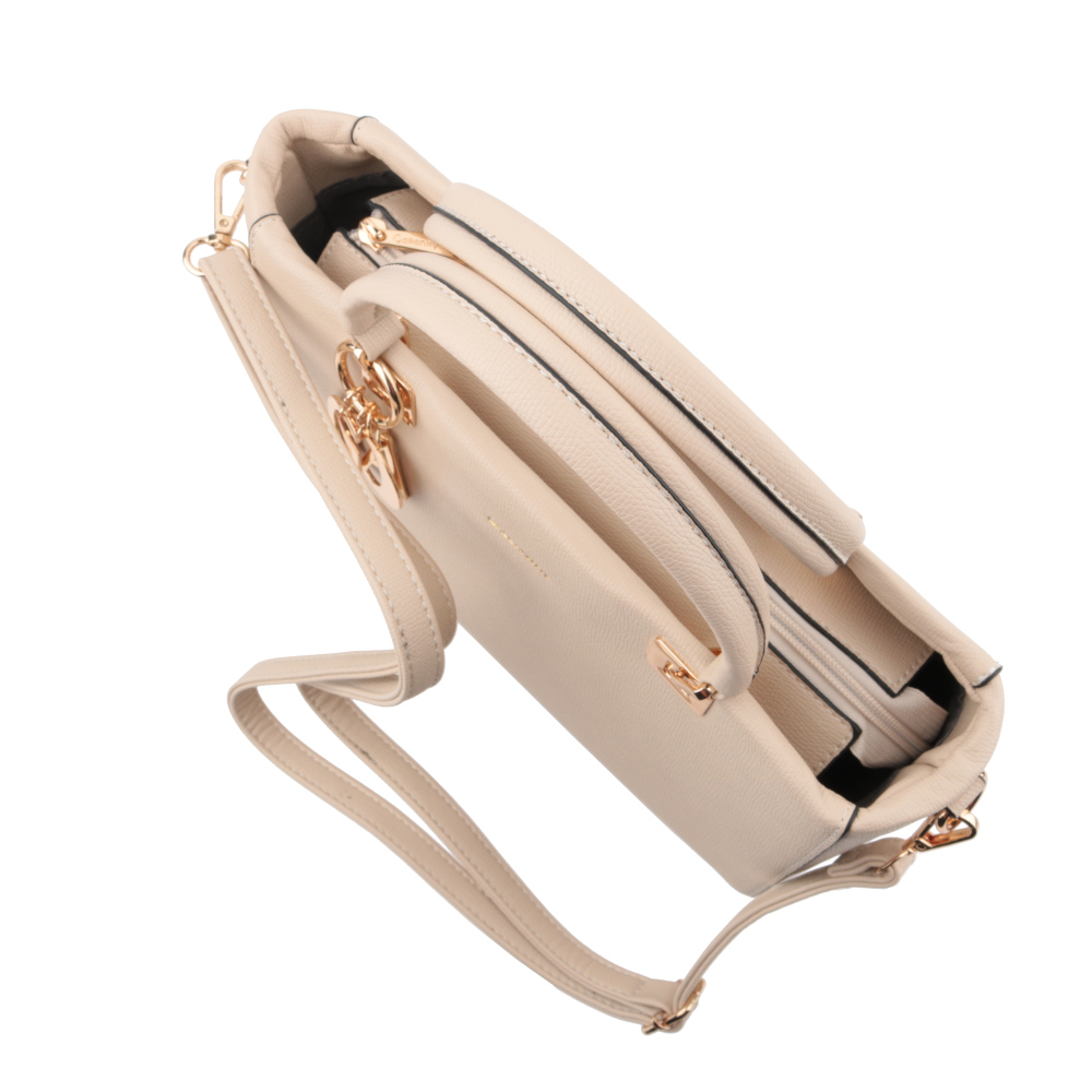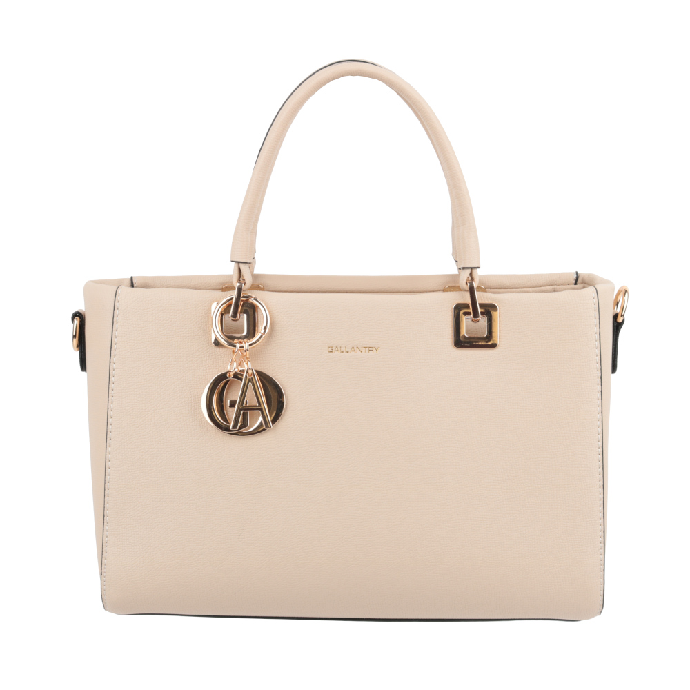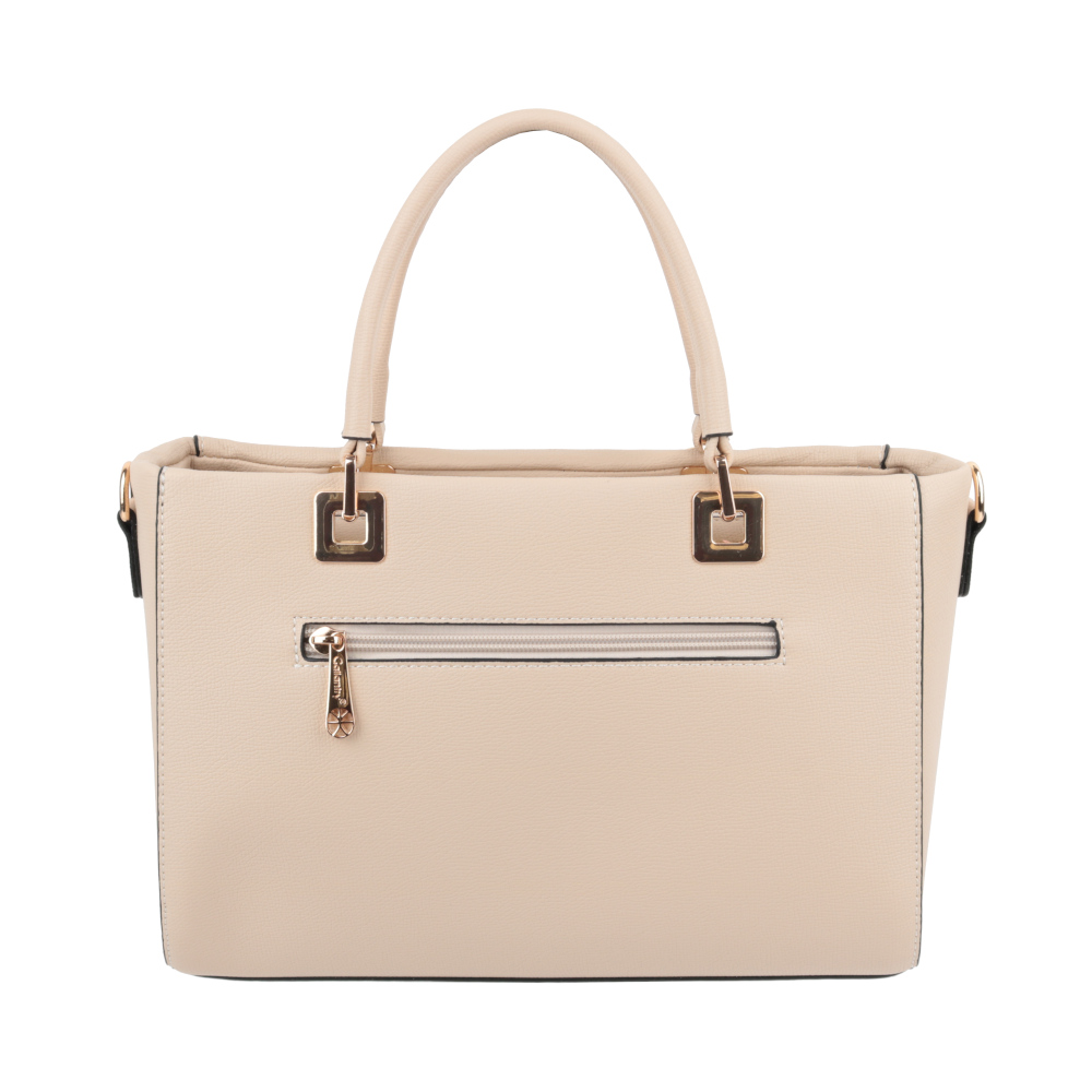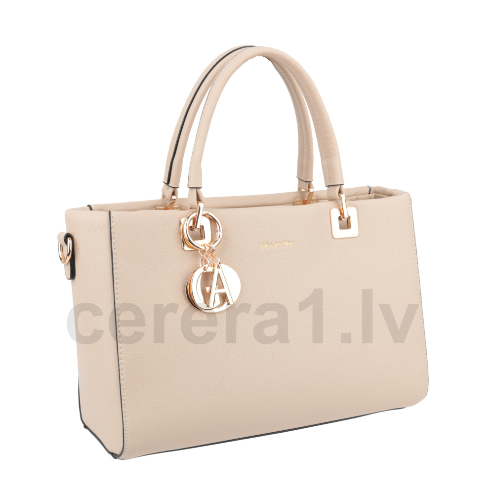 Mākslīgās ādas soma sievietēm. Izmērs: 32 × 21 × 13 cm. Krāsa – bēša.