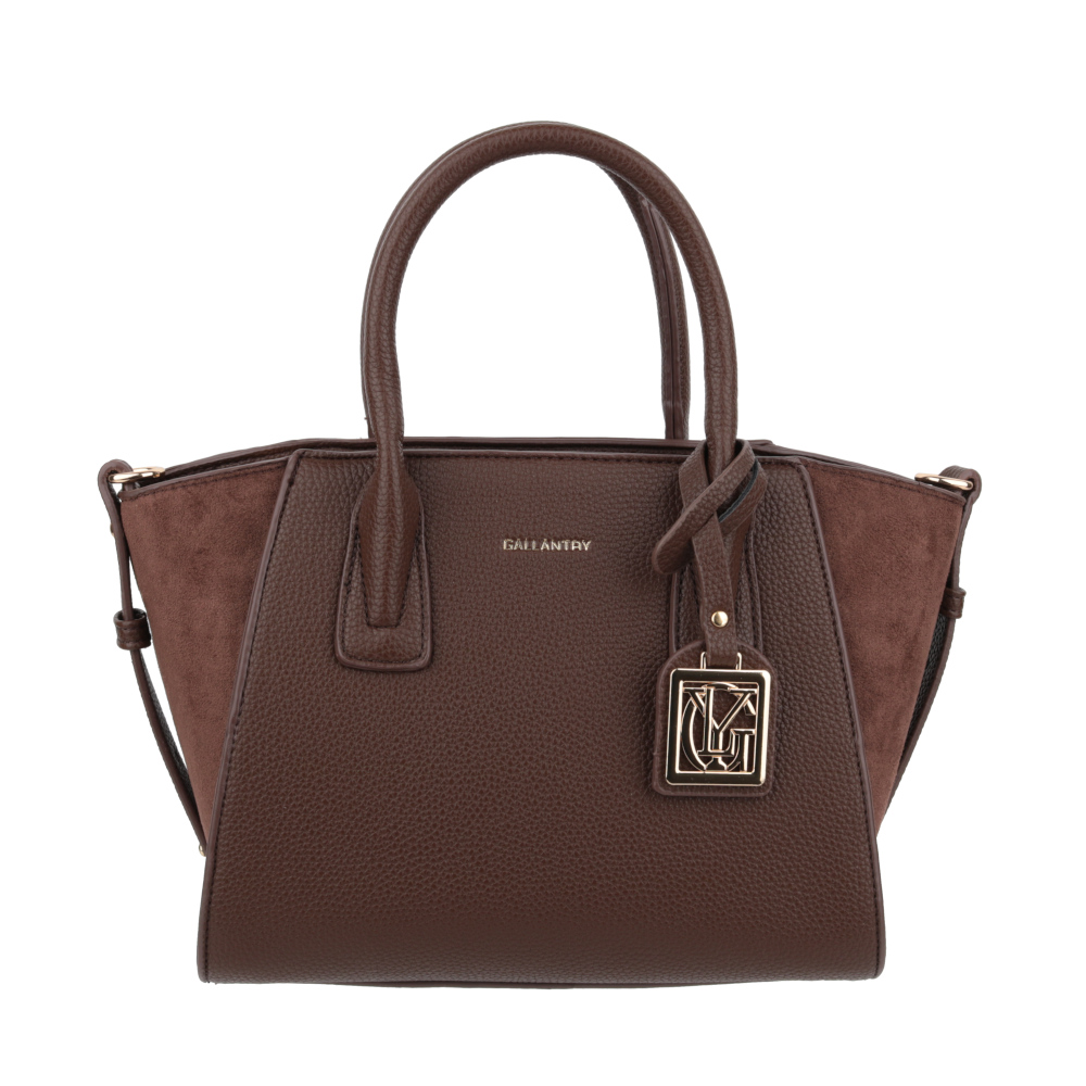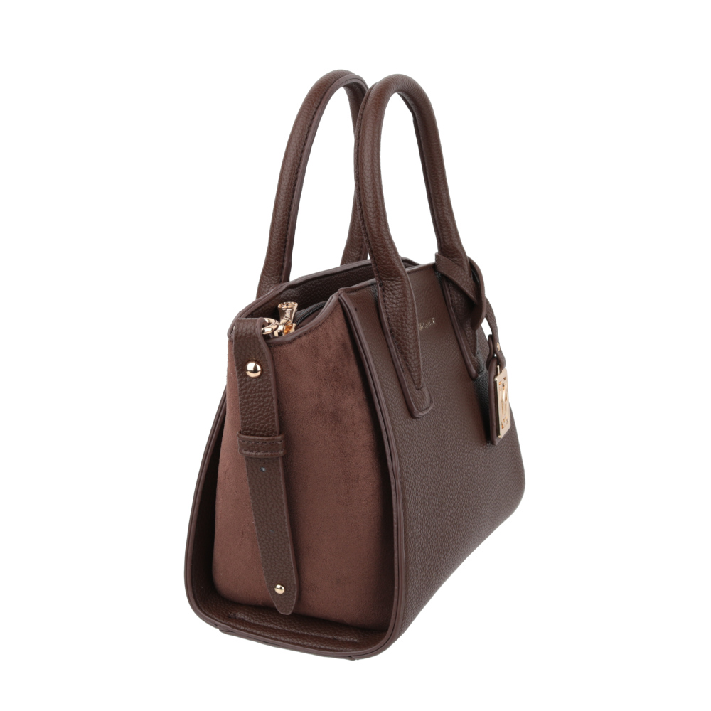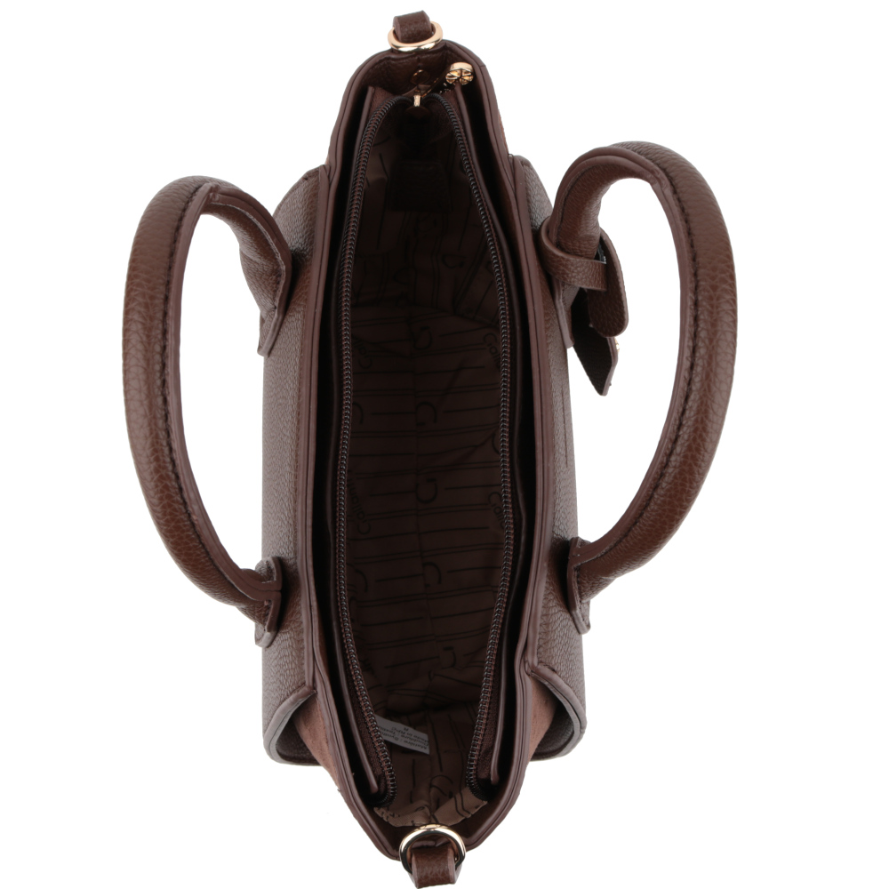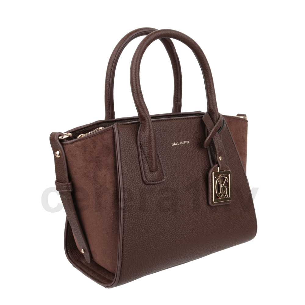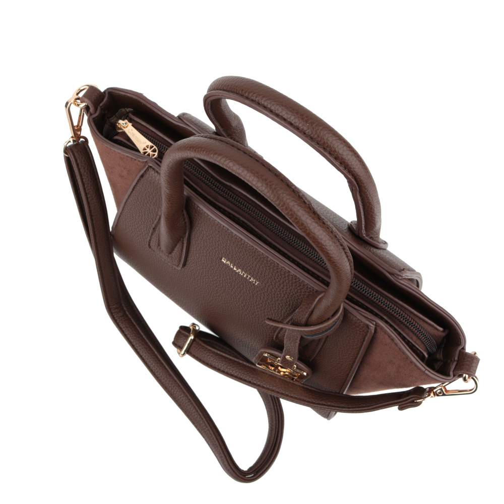 Mākslīgās ādas soma sievietēm. Izmērs: 31 × 20 × 13 cm. Krāsa – brūna.