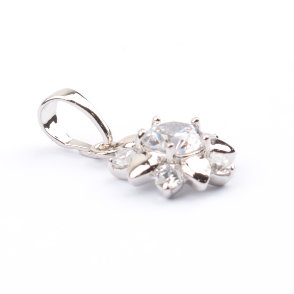 Bižutērijas kulons sudrabotā krāsā. Augstums – 2 cm. Platums – 1.1 cm.