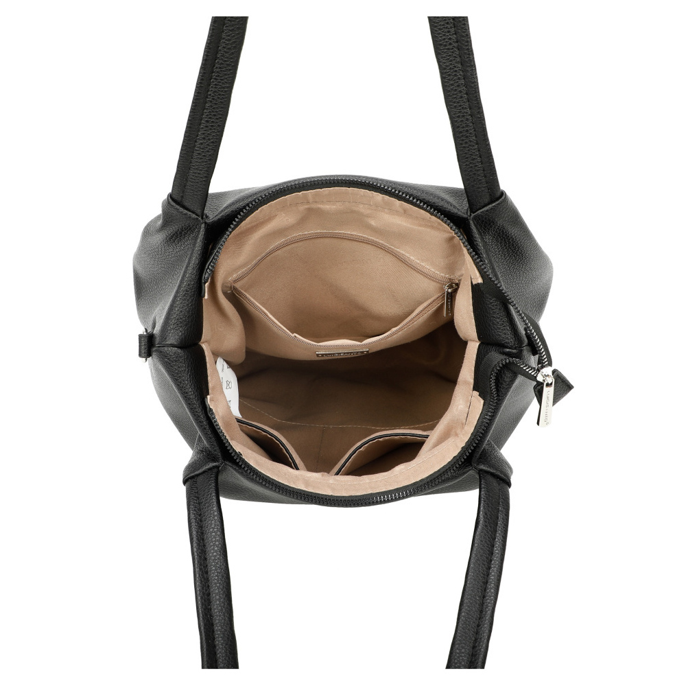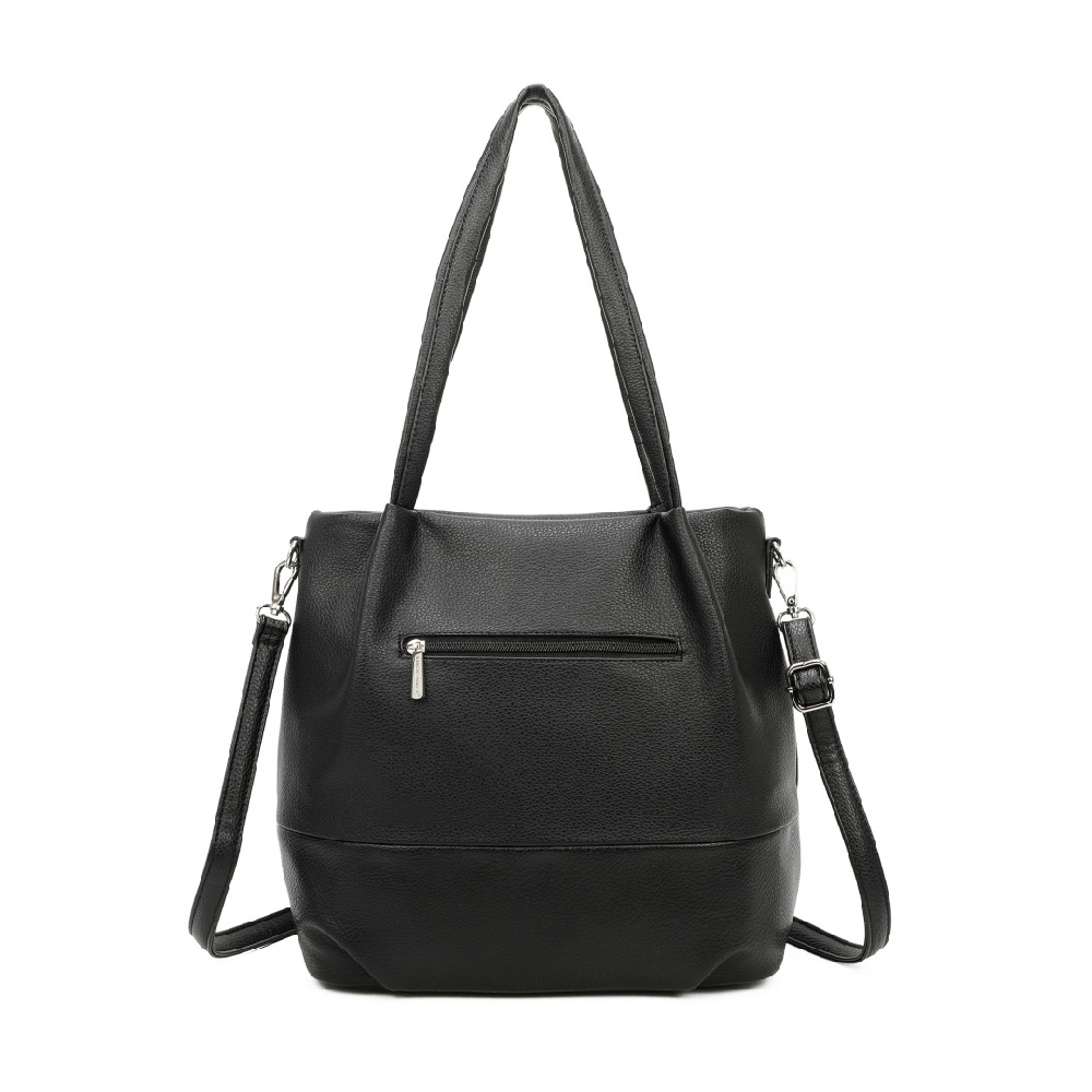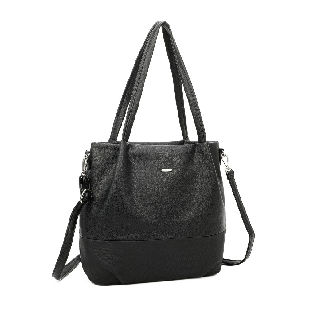 Mākslīgās ādas soma sievietēm. Izmērs: 36 × 29 × 15 cm. Krāsa – melna.