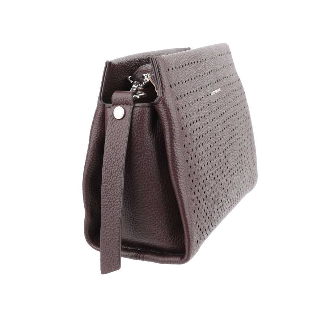 Mākslīgās ādas plecu soma sievietēm. Izmērs: 25 × 19 × 11 cm. Krāsa – brūna.