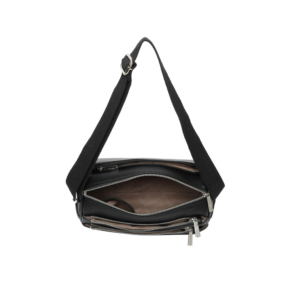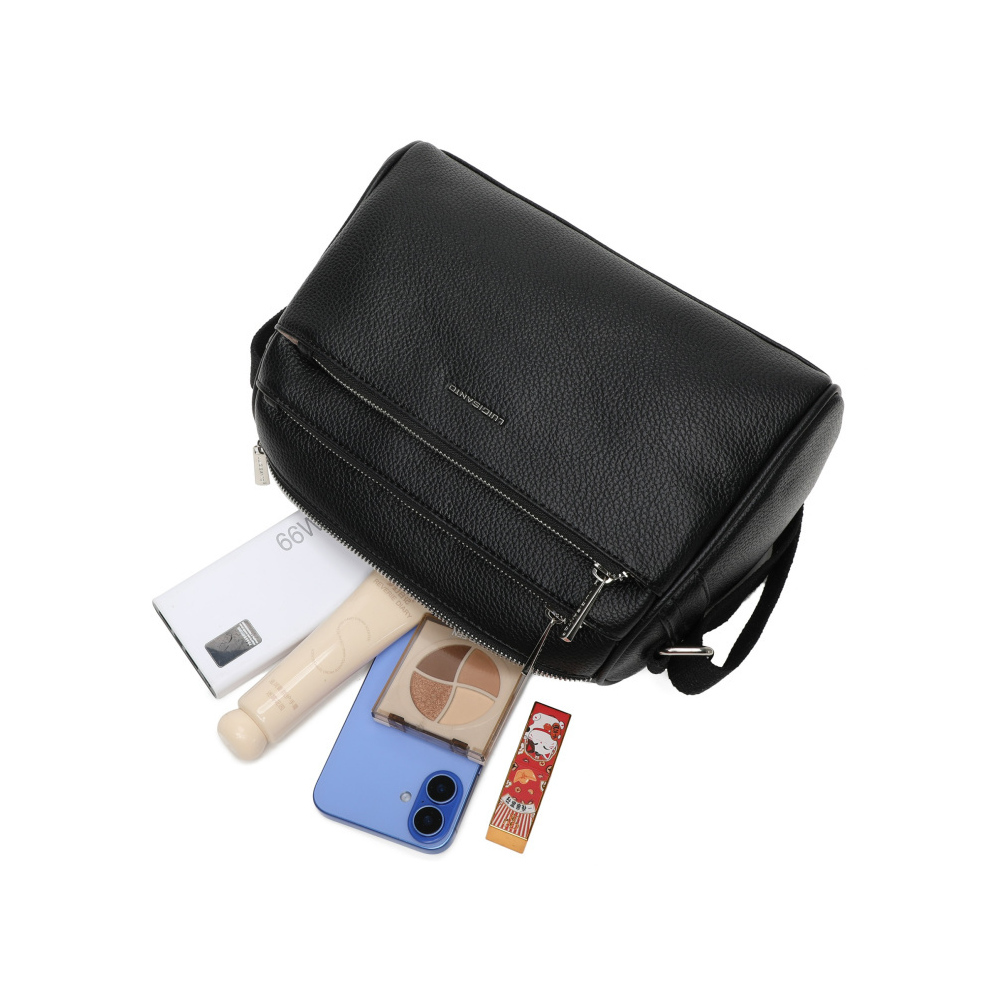 Mākslīgās ādas plecu soma sievietēm. Izmērs: 27 × 19 × 13 cm. Krāsa – melna.