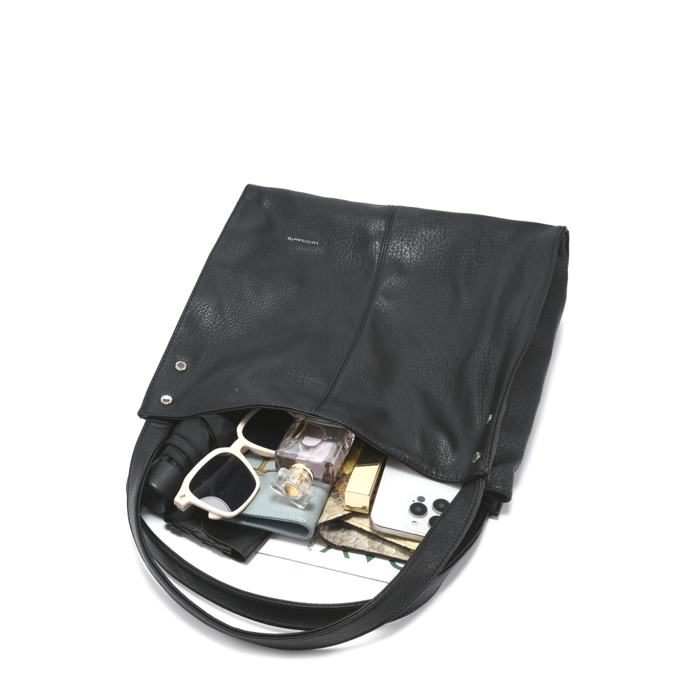Mākslīgās ādas soma sievietēm. Izmērs: 36 × 33 × 11 cm. Krāsa – melna.