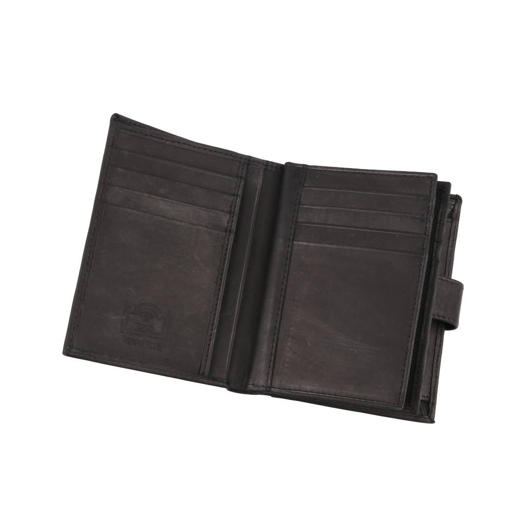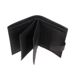 Dabīgās ādas maks. Izmērs: 10 × 13 × 3 cm. Krāsa – melna. Ar RFID aizsardzību.